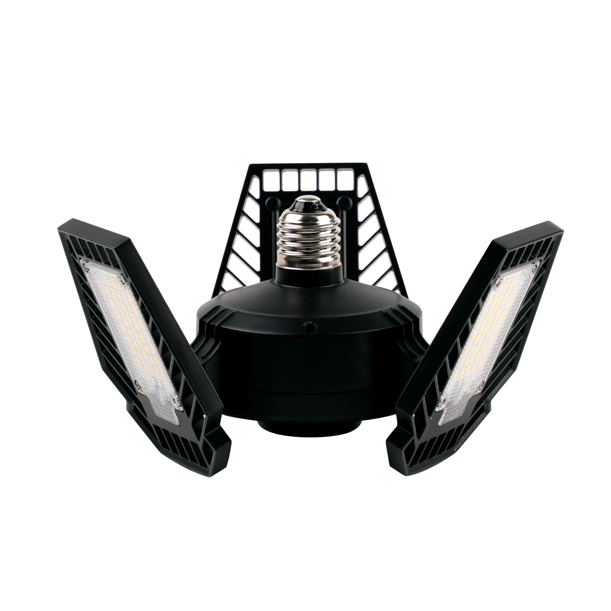 The 3-panel adjustable LED panel bulb garage light from Pinegreen Lighting would be a perfect solution to your dimly lit garages. Unlike conventional incandescent bulbs, our LED garage light can produce the same brightness at only 15% of the electricity cost, and in the meantime has a much longer lifespan (up to 30,000 hours). The adjustable panels make it possible for you to modify the illumination in your space, and the light covers up to a 360° area in a large space. It is equipped with standard E26 base, so you can screw it in a standard E26 socket with ease.